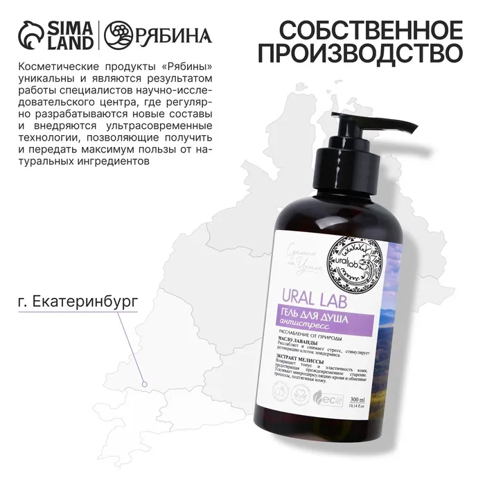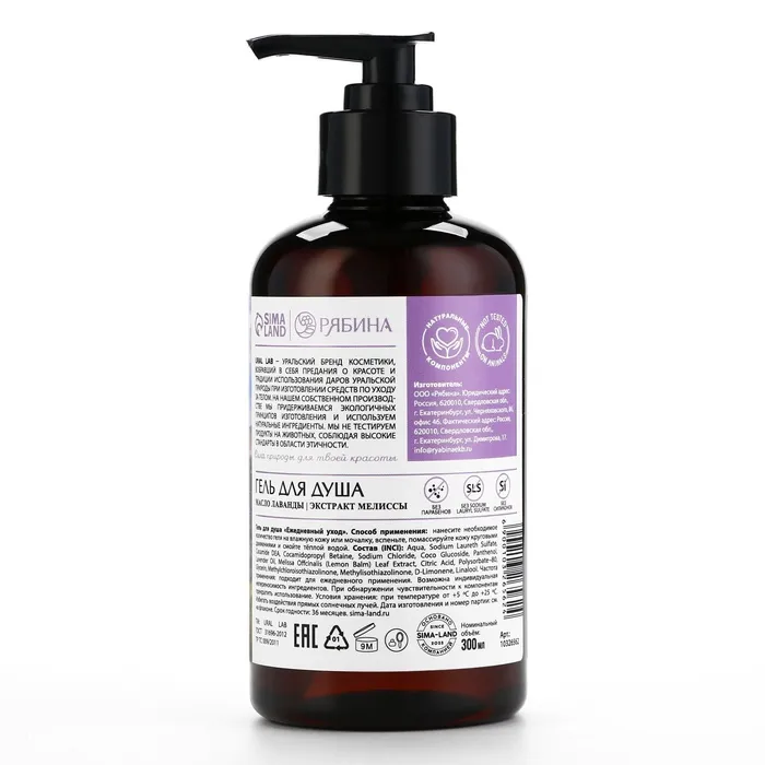 Гель для душа женский с маслом лаванды и экстрактом мелиссы, 300 мл, URAL LAB — Характеристики