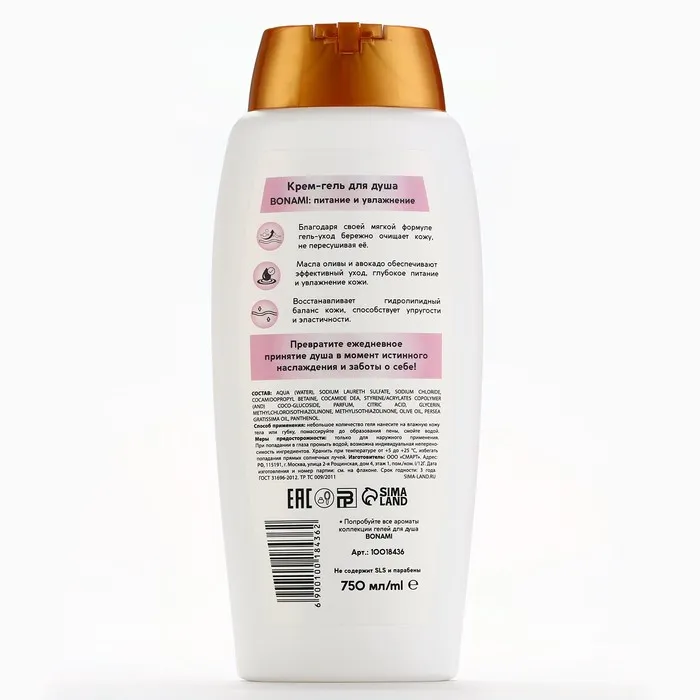 Гель для душа женский с пантенолом, 750 мл, аромат нежности шёлка, BONAMI — Характеристики