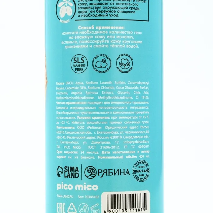 Гель для душа женский Sunny pineapple, 400 мл, аромат ананаса, PICO MICO — Характеристики
