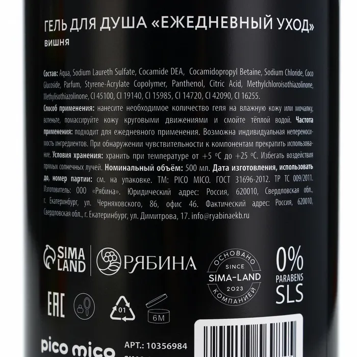 Гель для душа женский «Вишневая бомба», 500 мл, аромат вишни, PICO MIСO — Характеристики