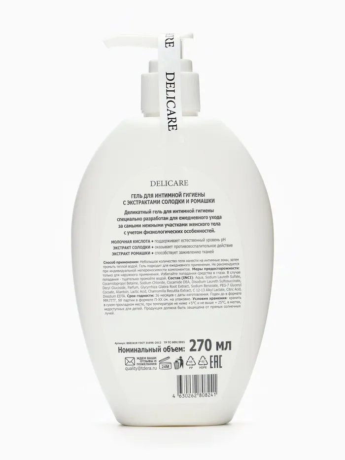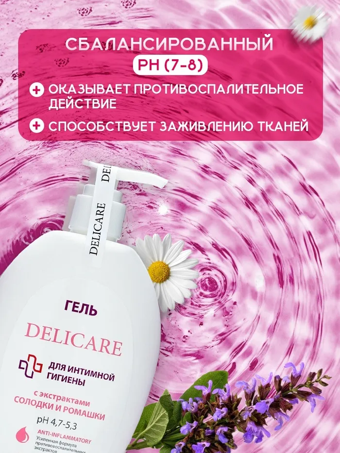 Гель для интимной гигиены Delicare с экстрактами корня солодки и ромашки, 270 мл — Характеристики