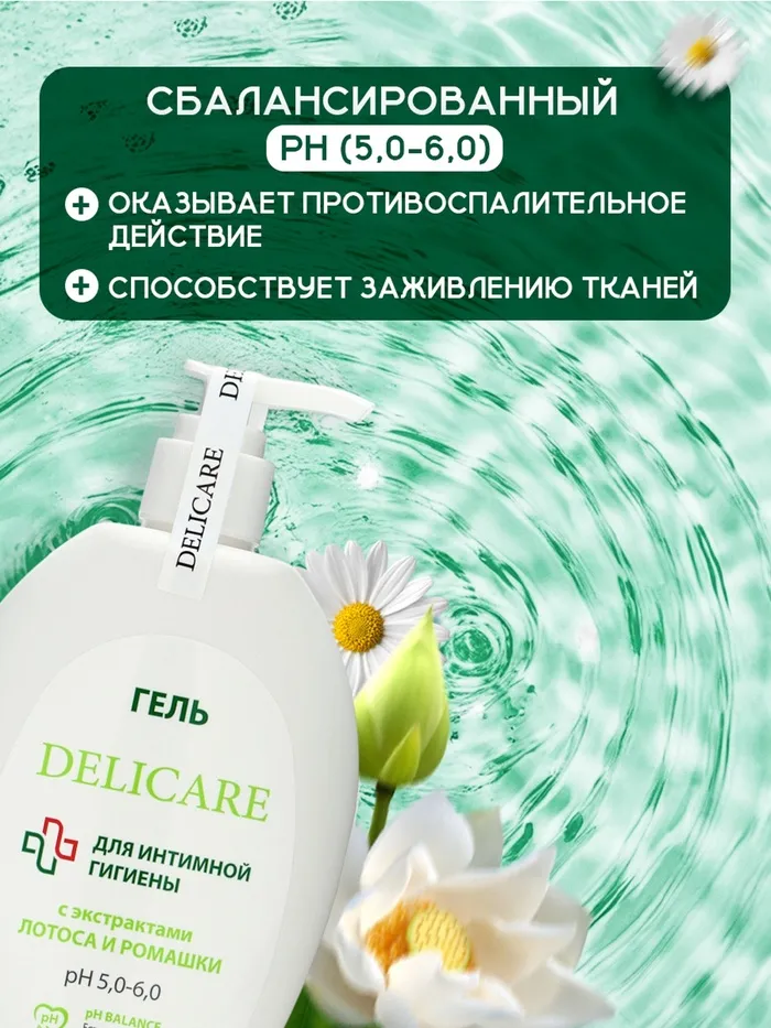 Гель для интимной гигиены Delicare с экстрактом лотоса и ромашки, 300 мл