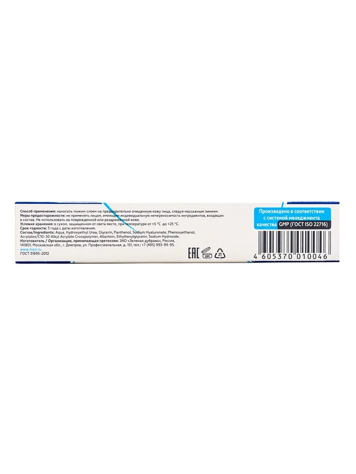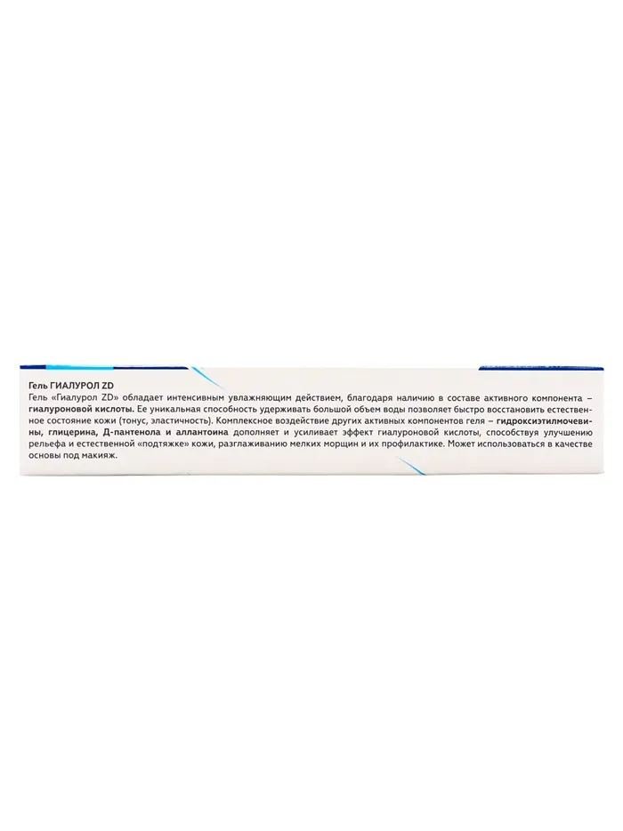 Обладает интенсивным увлажняющим действием, благодаря наличию в составе активного компонента - гиалуроновой кислоты. Ее уникальная способность удерживать большой объем воды в клетках позволяет быстро восстановить естественное состояние кожи (тонус, эластичность). Комплексное воздействие других активных компонентов геля – гидроксиэтилмочевины, глицерина, Д-пантенола и аллантоина дополняет и усиливает эффект гиалуроновой кислоты, способствуя улучшению рельефа и естественной «подтяжке» кожи, разглаживанию мелких морщин и их профилактике.