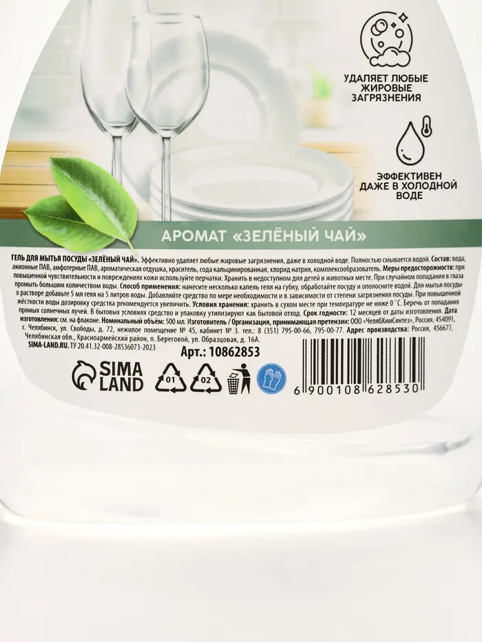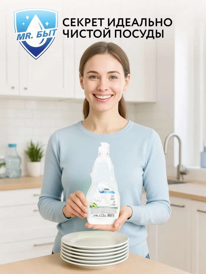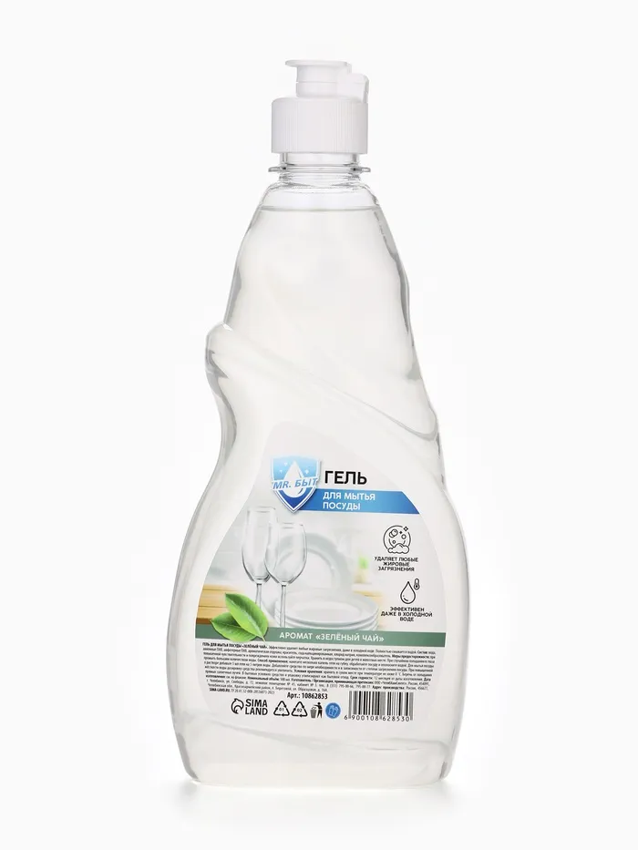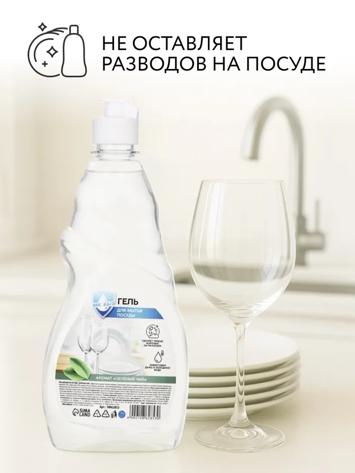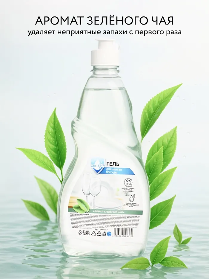 Гель для мытья посуды, 500 мл, аромат зелёный чай, Mr.Быт — Характеристики