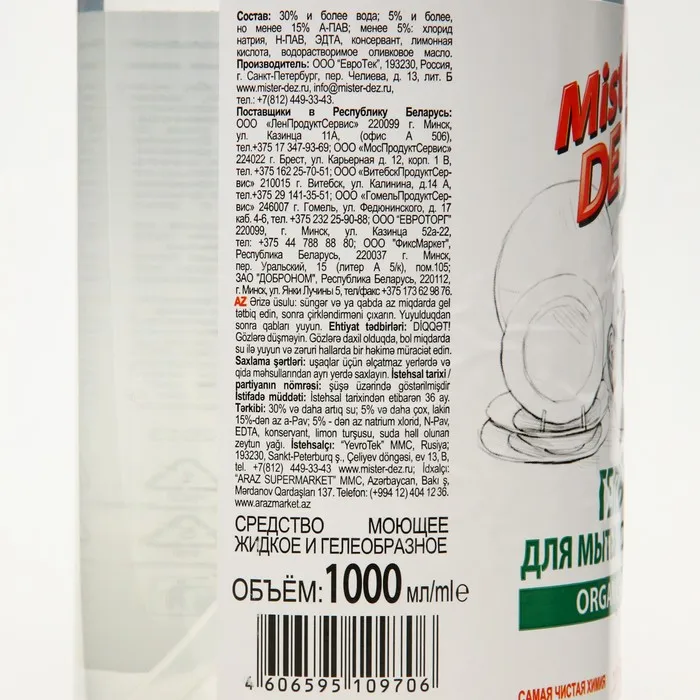 Гель для мытья посуды содержит экологически чистые моющие компоненты из натурального сырья. Преимущества:
