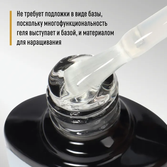Не требует подложки в виде базы, поскольку многофункциональность геля выступает и базой, и материалом для наращивания.
