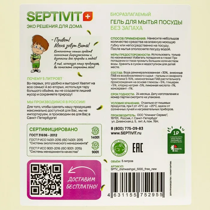 Продукция бренда SEPTIVIT Premium соответствует стандартам ISO 9001:2015, ISO 14001:2015.
