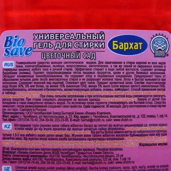 Гель для стирки BIOSAVE Бархат "Цветочный сад".