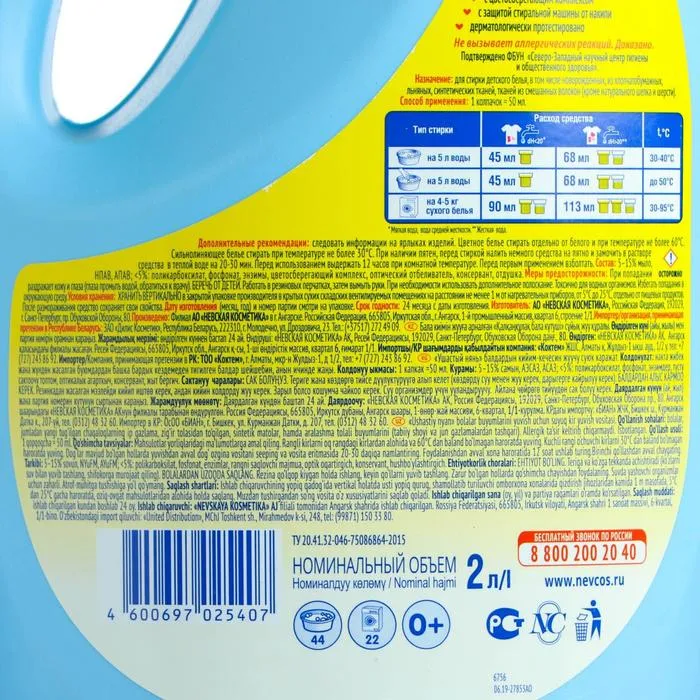 Гель Ушастый Нянь предназначен для ручной и машинной стирки детского белья для малышей с первых дней жизни. Средство не вызывает аллергических реакций, поэтому безопасно для чувствительной кожи.
