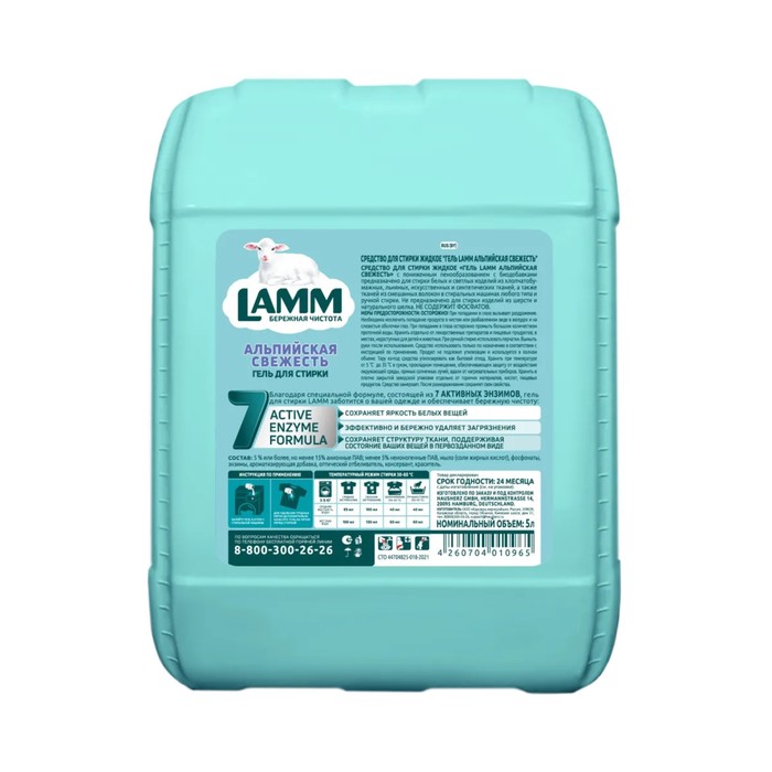 Гель для стирки Lamm «Альпийская свежесть», 5 л — Характеристики