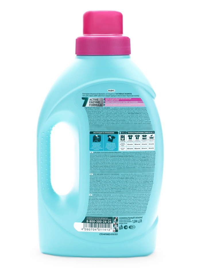 - Удобная упаковка: 1,04 л геля достаточно для множества стирок, что делает продукт практичным для дома.