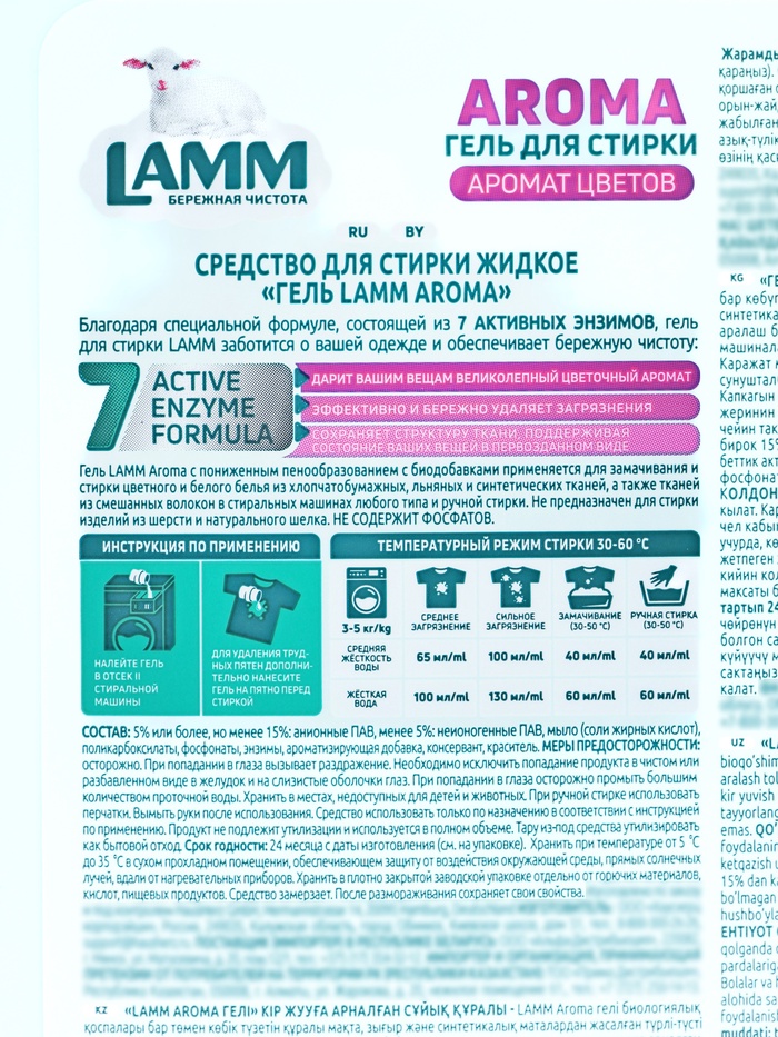 LAMM Aroma — это универсальный гель для стирки, который сочетает высокую эффективность удаления загрязнений с приятным ароматом. Средство обеспечивает глубокую очистку ткани, сохраняет её мягкость и насыщает бельё свежим, стойким ароматом после каждой стирки.
