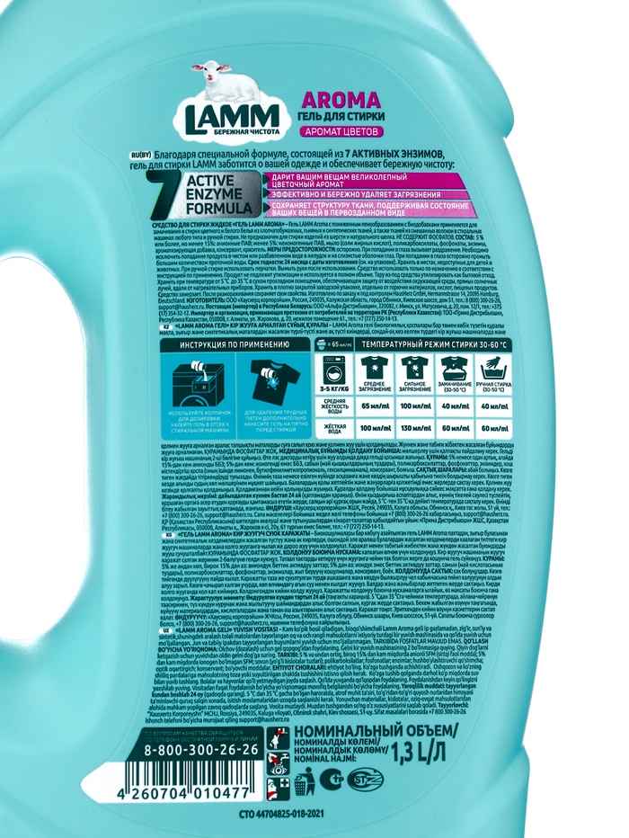 Гель для стирки LAMM Aroma, аромат цветов, 1.3 л — Характеристики