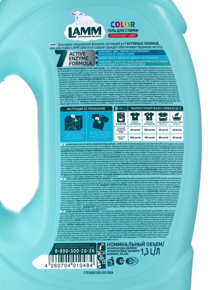 Гель для стирки LAMM Color, 1.3 л — Характеристики