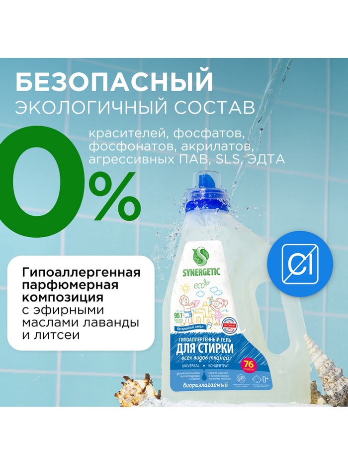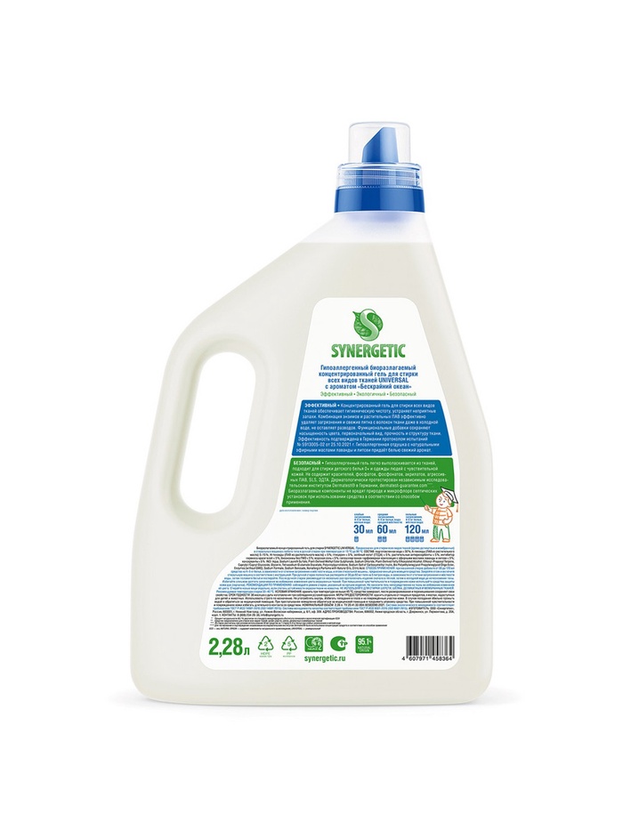Гель для стирки SYNERGETIC UNIVERSAL «Бескрайний океан», гипоаллергенный, 2.28 л — Характеристики