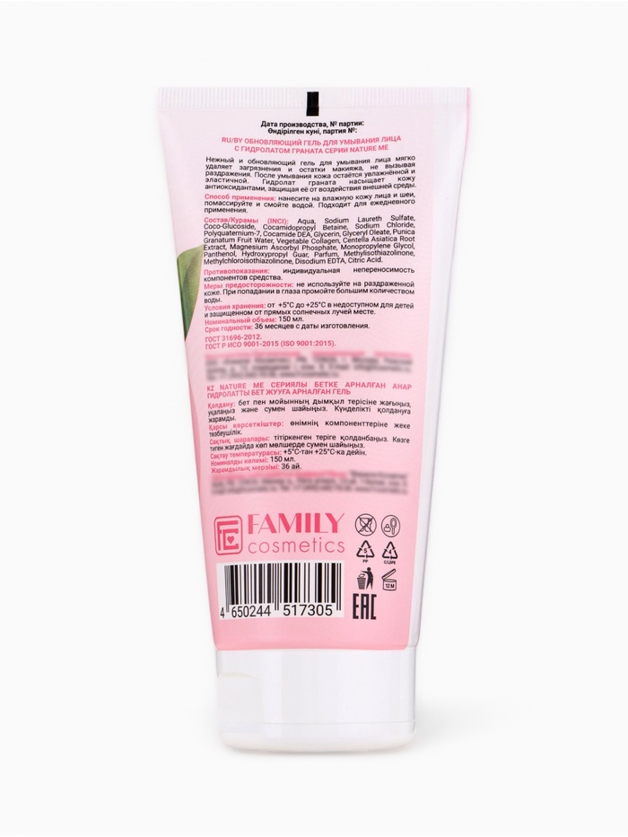 Обновляющий гель для умывания NATURE ME с гидролатом граната мягко очищает кожу лица и шеи, удаляя загрязнения и остатки макияжа, не вызывая раздражения. После применения кожа ощущается увлажнённой, эластичной и свежей, с заметным сиянием и комфортом.