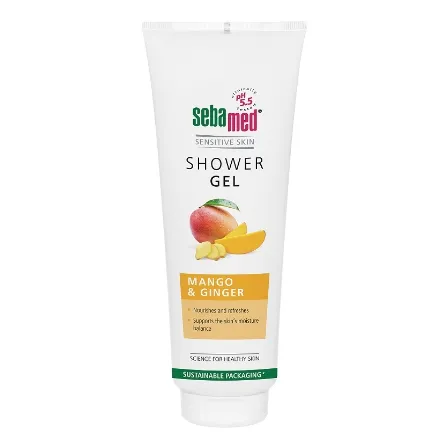 Гель для душа Sebamed с ароматом свежего манго и имбиря. Освежающий и ухаживающий за кожей состав делает её мягкой и бархатистой. Нежно очищает кожу, а pH 5,5 поддерживает естественную защиту кожи.