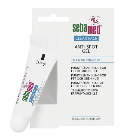 Гель Sebamed Clear Face Anti-Spot против несовершенств для лица – помогает быстро и эффективно бороться с акне и предотвращает появление постакне. Продукт обладает направленным действием против патогенной микрофлоры, которая вызывает появление прыщей и воспаленных участков. Смягчающие и успокаивающие компоненты в составе геля против проблемных зон для лица Sebamed устраняют покраснения, смягчают кожу и предотвращают шелушение. Уровень рН продукта равен 5,5, что поддерживает локальный иммунитет рогового слоя.