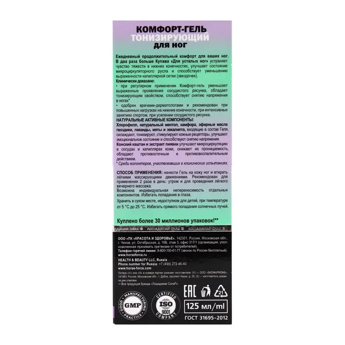 Комфорт-гель Лошадинная сила "Тонизирующий" для ног, обеспечит ежедневный комфорт ваших ног.
