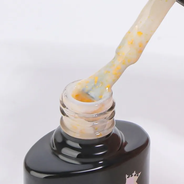 Цветной гель лак, в сочетании с золотистой поталью, придаст маникюру лёгкое сияние. Поталь-это небольшие блестки, которые сделают Ваш маникюр уникальным и ярким.Создавайте трендовый дизайн в сочетании с любыми гель лаками: кошачий глаз из серии «CAT`S EYE», светящиеся в темноте из серии «GLOW IN THE DARK», шиммерными из серии «SHINING STAR» однотонными из серии «CLASSIC COLORS», гель лаками с блёстками серии «GLITTER FLASH», нежными оттенками из линейки «DELICATE NUDE» и неоновыми цветами из серии «NEON». Можете выбрать спокойные цвета, а также яркие, в зависимости от того, какой дизайн маникюра Вы хотите получить.