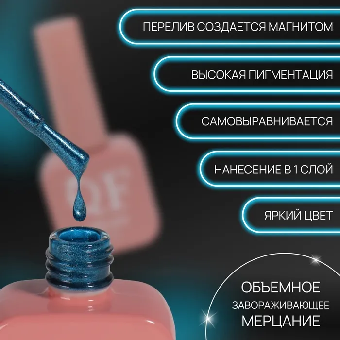 Магнитный гель лак кошачий глаз — это глубокий объемный блик, который под разным углом зрения меняет свой первоначальный цвет от двух до пяти переливов, а светоотражающие частички будут переливаться на свету.Индикатор цвета на верху бутылька, поможет Вам подобрать идеальный цвет.
