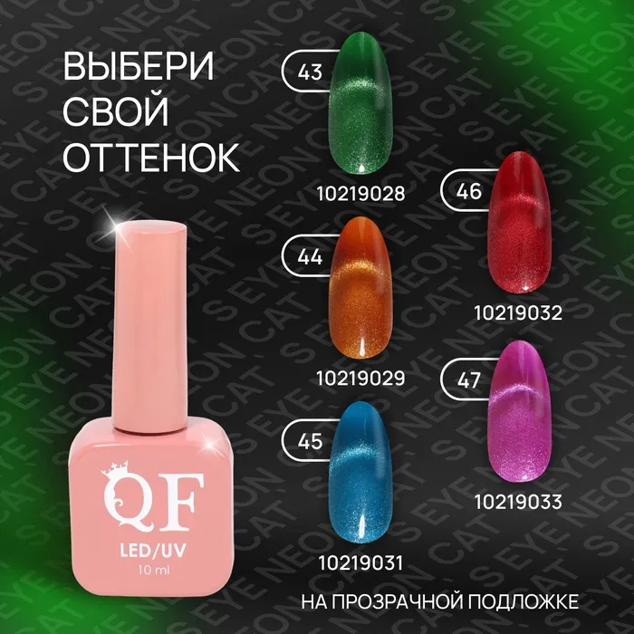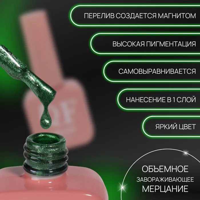 Гель лак для ногтей, кошачий глаз, неоновый, трехфазный, 10 мл, LED/UV, зелёный (43) — Характеристики