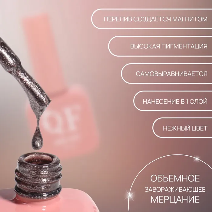 Гель лак «CAT`S EYE GENTLE» хрустальный кошачий глаз от бренда Queen fair (QF) - это тот самый гель лак с объемным 3D-эффектом для создания трендового маникюра Корейская кошка! Гель лак шелковая кошка состоит из мельчайших магнитных частичек, за счет них узор получается объемным и завораживающим.
