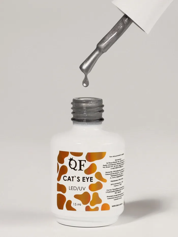 Гель лак для ногтей кошачий глаз, трехфазный, 15 мл, LED/UV, серебристый — Характеристики