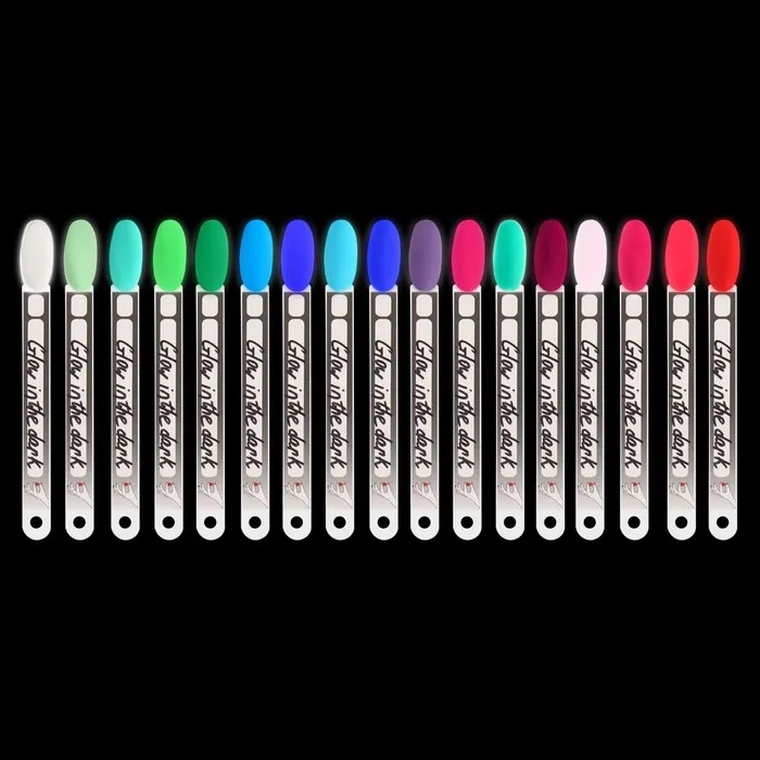 Сочная и яркая палитра оттенков 3-х фазных люминесцентных гель лаков серии «GLOW IN THE DARK».
