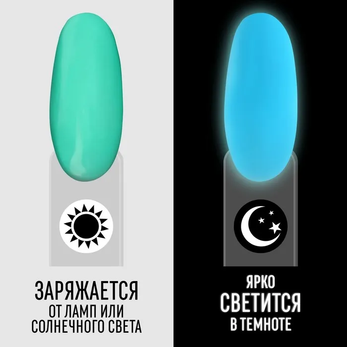 Гель лак для ногтей, люминесцентный, трехфазный, 8 мл, LED/UV, зелёный (21) — Характеристики