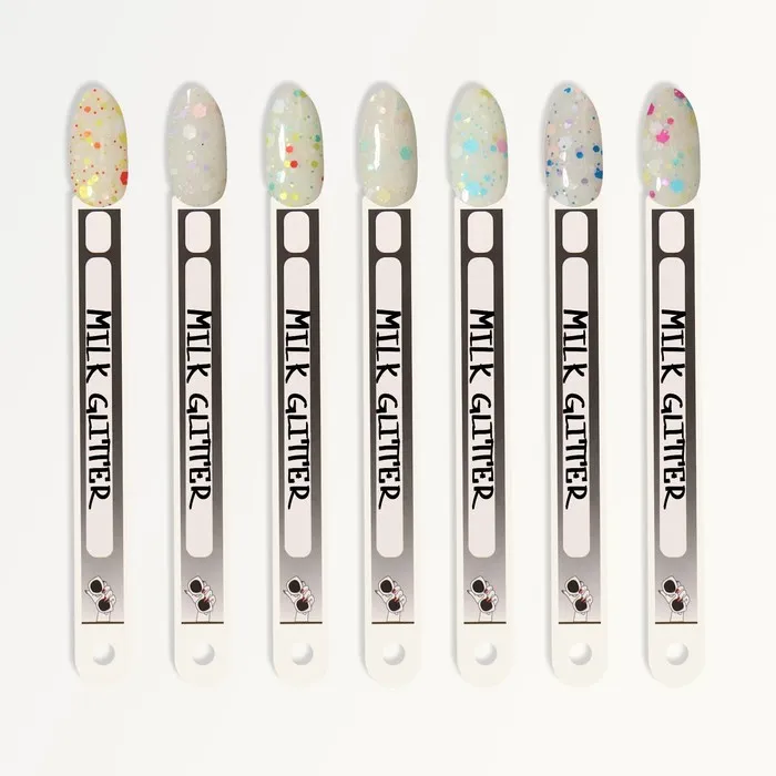 Прозрачный лак, в сочетании с глиттером, придаст маникюру невероятный блеск. Glitter означает «сияние» и «блеск», поэтому серия гель лаков «MILK GLITTER» сделают Ваш маникюр уникальным и ярким.