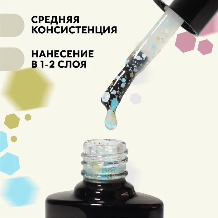 Создавайте трендовый дизайн в сочетании с любыми гель лаками: кошачий глаз из серии «CAT`S EYE», светящиеся в темноте из серии «GLOW IN THE DARK», шиммерными из серии «SHINING STAR» однотонными из серии «CLASSIC COLORS», гель лаками с блёстками серии «GLITTER FLASH», нежными оттенками из линейки «DELICATE NUDE» и неоновыми цветами из серии «NEON». Можете выбрать спокойные цвета, а также яркие, в зависимости от того, какой дизайн маникюра Вы хотите получить.