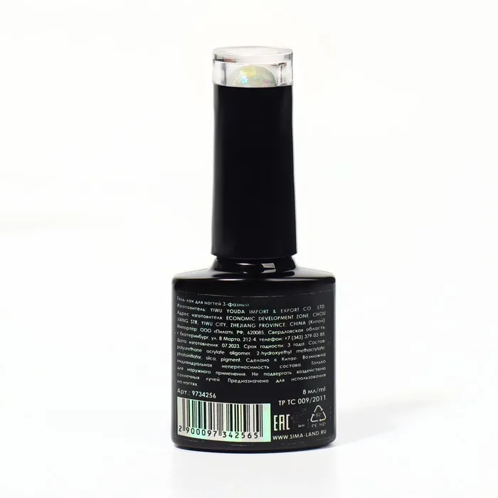 Гель лак для ногтей, «MILK GLITTER», трехфазный, 8 мл, LED/UV, прозрачный (08) — Характеристики