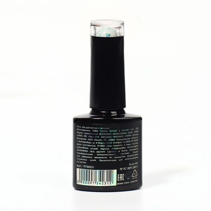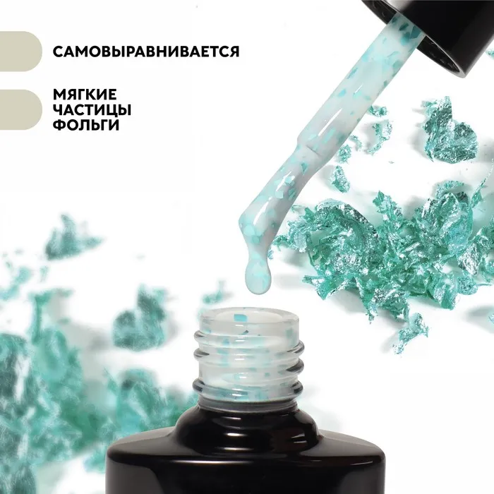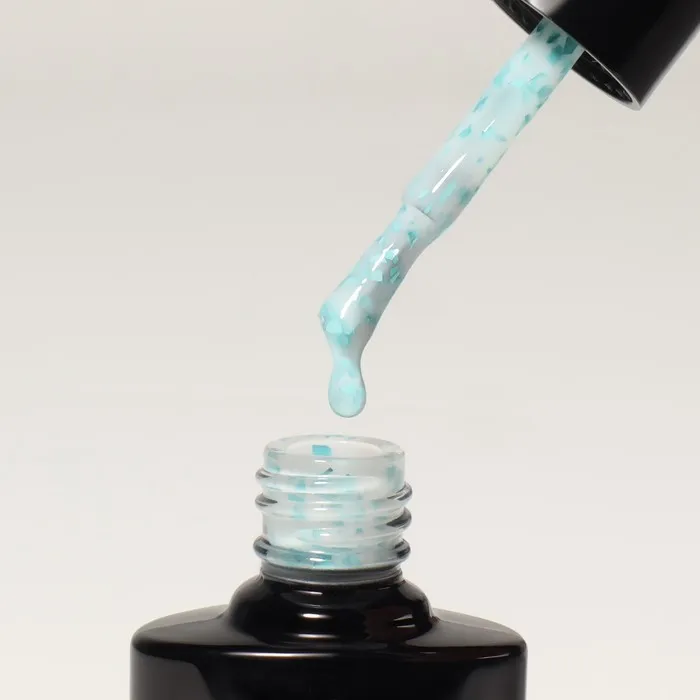 Гель лак для ногтей, молочный, с поталью, трехфазный, 8 мл, LED/UV, белый, голубой (07) — Характеристики