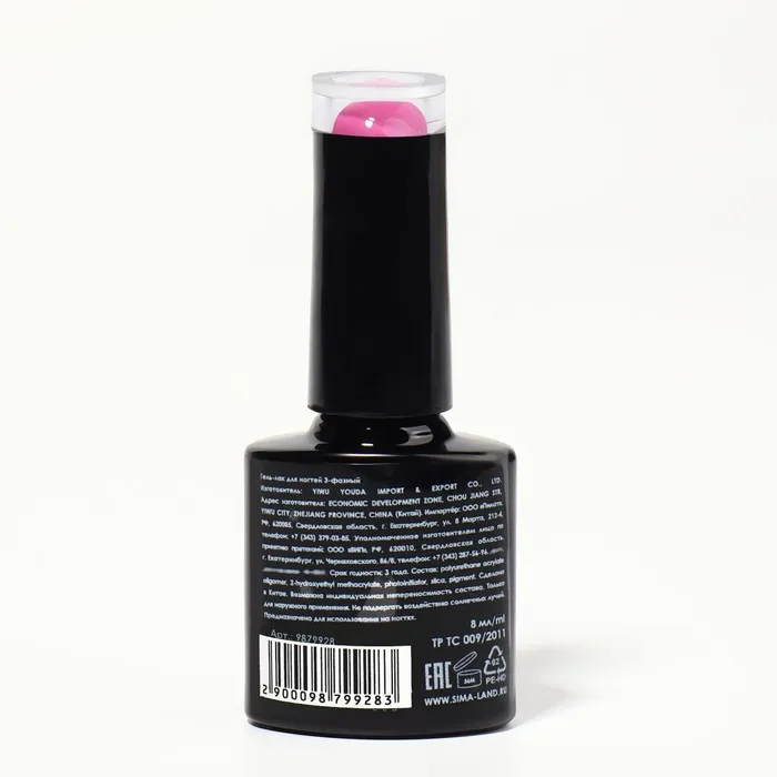 Гель лак для ногтей, неоновый, трехфазный, 8 мл, LED/UV, розовый (62) — Характеристики