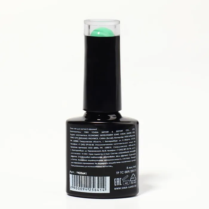Гель лак для ногтей, неоновый, трехфазный, 8 мл, LED/UV, зелёный (19) — Характеристики