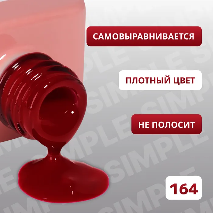 Гель лак для ногтей, однотонный, трехфазный, 10 мл, LED/UV, красный (164) — Характеристики