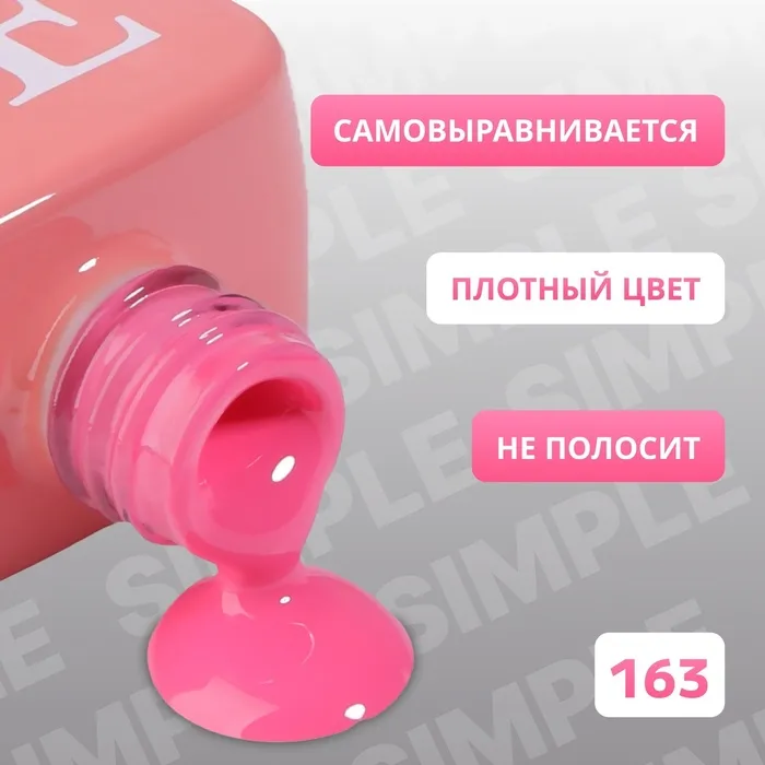 Гель лак для ногтей, однотонный, трехфазный, 10 мл, LED/UV, розовый (163) — Характеристики