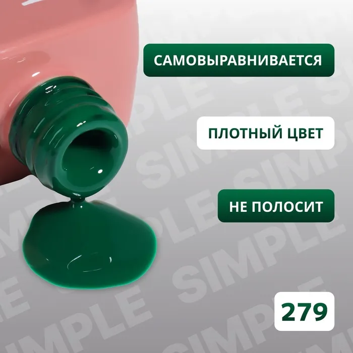 Гель лак для ногтей, однотонный, трехфазный, 10 мл, LED/UV, зелёный (279) — Характеристики