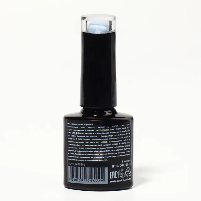 Гель лак для ногтей, однотонный, трехфазный, 8 мл, LED/UV, голубой (93) — Характеристики