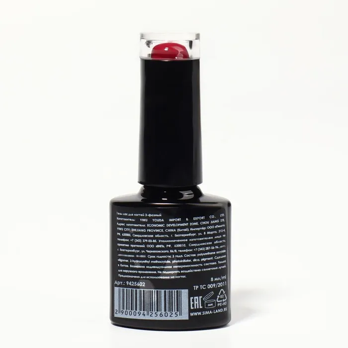 Гель-лак для ногтей, однотонный, трехфазный, 8 мл, LED/UV, красный (124) — Характеристики