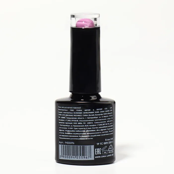 Гель лак для ногтей, однотонный, трехфазный, 8 мл, LED/UV, розовый (104) — Характеристики