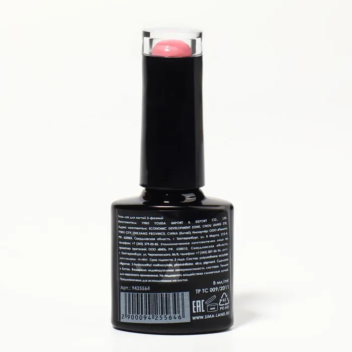 Гель лак для ногтей, однотонный, трехфазный, 8 мл, LED/UV, розовый (12) — Характеристики
