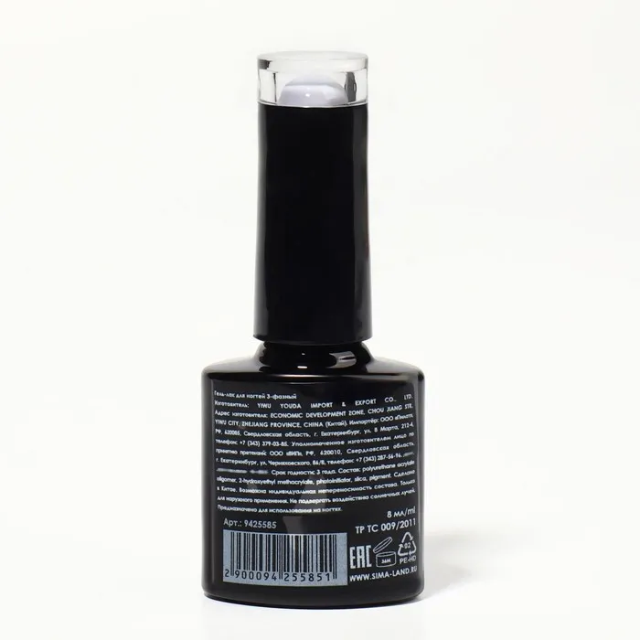 Гель лак для ногтей, однотонный, трехфазный, 8 мл, LED/UV, серый (73) — Характеристики