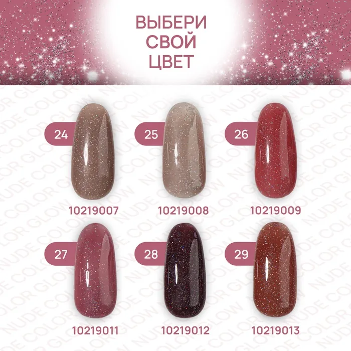 Серия гель лаков с эффектом нюдового мерцания «NUDE COLOR GLOW».