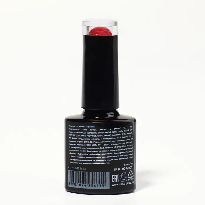 Гель лак для ногтей, с блёстками, трехфазный, 8 мл, LED/UV, красный (85) — Характеристики