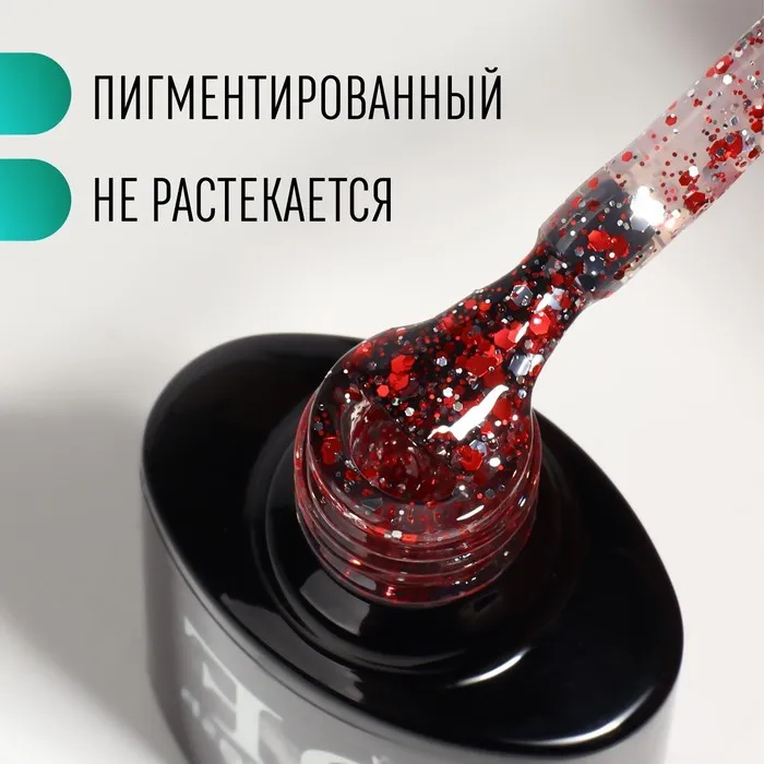 Глубокое сияние гель лака раскрывается при попадании на покрытие света. Прозрачный лак с крупными блёстками равномерно распределяется и идеально сцепляется с ногтевой пластиной. Используйте для праздничного и повседневного дизайна.