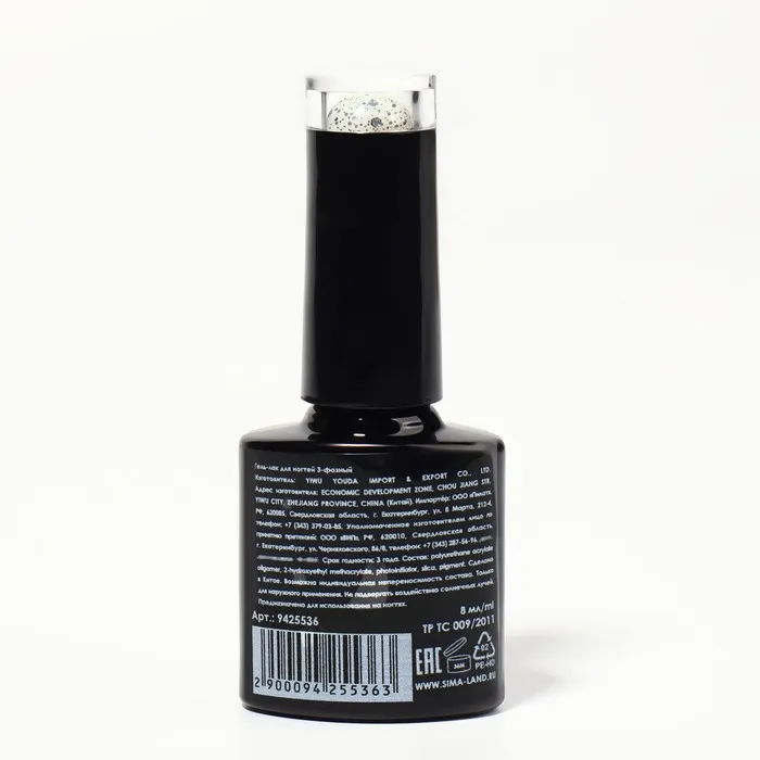 Гель лак для ногтей, с блёстками, трехфазный, 8 мл, LED/UV, прозрачный, серебристый (01) — Характеристики