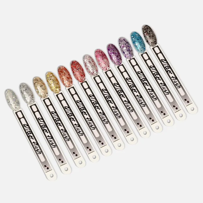 Привлекательная палитра оттенков 3-х фазных гель лаков серии «GLITTER FLASH».