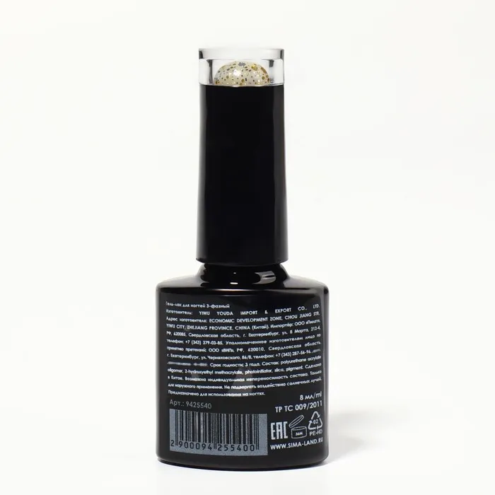 Гель лак для ногтей, с блёстками, трехфазный, 8 мл, LED/UV, прозрачный, жёлтый (05) — Характеристики